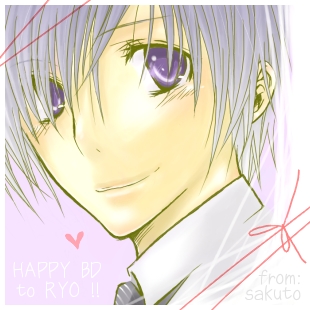最近絵を描いていないので、昔(というか1月に)涼さんにあげたお誕生日の絵でも。キラキラ具合が少女マンガ見たいでなんとも言えん…。