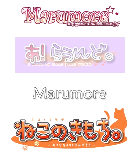 なんかを施してます。後はちょこちょこお飾りとか。デッサン力が必要な絵と違って、ロゴって慣れれば結構形になって来るものなので、やっていて本当に楽しいです。エロゲっぽいタイトルデザインが多いのはお約束。